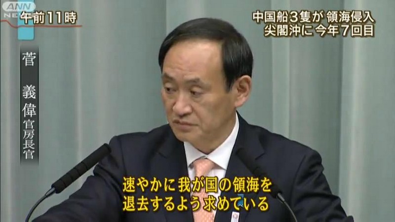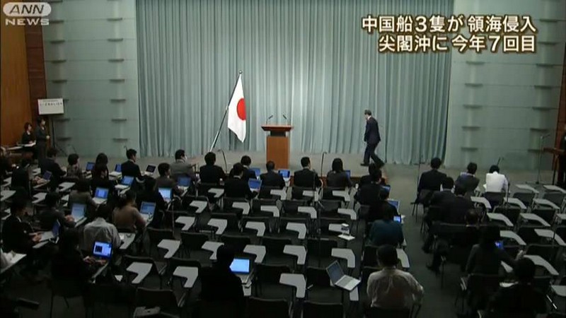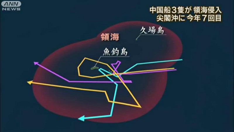 報道稱(chēng), 18日上午8時(shí)54分至9時(shí)17分,中國3艘海監船相繼進(jìn)入釣魚(yú)島附近的“日本領(lǐng)!,日本海上保安廳巡邏船立即發(fā)出警告。中國“海監50”則通過(guò)無(wú)線(xiàn)電用中文和英語(yǔ)回答稱(chēng),釣魚(yú)島及其附屬島嶼是中國領(lǐng)土。共同社稱(chēng),3艘中國船環(huán)繞釣魚(yú)島航行約5小時(shí),“海監50”最近時(shí)僅距島約1公里。