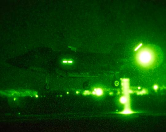 2013年4月2日晚上,馬里蘭州帕塔克森特河航空站,美國海軍F-35B BF-04號戰機首次成功完成了夜間短距起飛垂直降落測試。標志著(zhù)該型戰機具備初步全天候作戰能力。