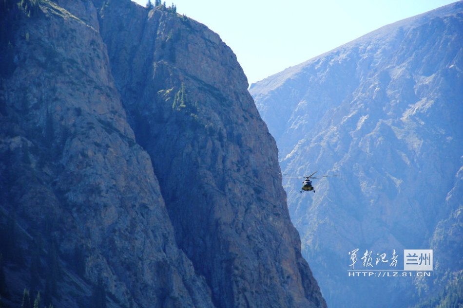 我軍直升機飛越險惡山區送給養