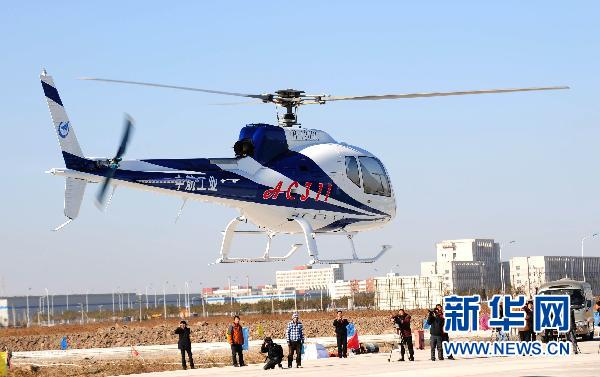 由中國航空工業(yè)集團公司自主研制的國產(chǎn)輕型多用途直升機AC311在中航直升機天津分公司完成總裝下線(xiàn),于11月8日在天津成功首飛。AC311直升機的首飛成功、由天津總裝的首架AC301直升機實(shí)現客戶(hù)接機,標志著(zhù)中國AC系列民用直升機產(chǎn)品開(kāi)發(fā)邁上新臺階。據介紹,AC311直升機是性能優(yōu)越的2噸級輕型多用途直升機,可廣泛應用于飛行訓練、人員運輸、公安執法、通信指揮、航拍攝影、醫療救護、電力巡線(xiàn)、護林防火、飛播滅蟲(chóng)等任務(wù)。與AC311一同飛行的直升機是同一系列的輕型直升機AC301。AC301是天津基地完成總裝的首架直升機,將由中國飛龍通用航空公司接收并投入運營(yíng)。新華社記者劉海峰攝