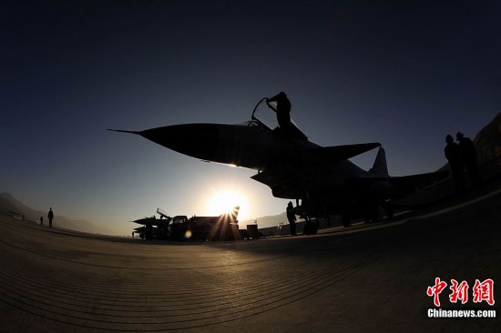 1月31日,雪域高原陽(yáng)光明媚,萬(wàn)里無(wú)云。駐藏空軍某軍用機場(chǎng)戰鷹列陣,車(chē)輛奔流,戰士們在緊張有序中拉開(kāi)龍年新春首飛的序幕。圖為晨曦初露,機務(wù)人員正在緊張準備戰鷹。中新社發(fā) 劉應華 攝 圖片來(lái)源:CNSPHOTO