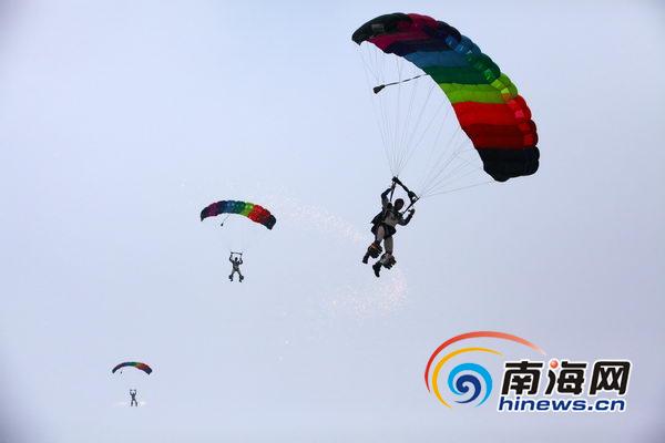 跳傘隊員們從天而降(南海網(wǎng)記者張茂攝)