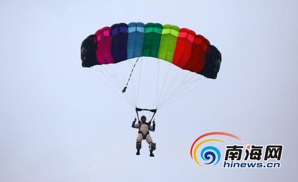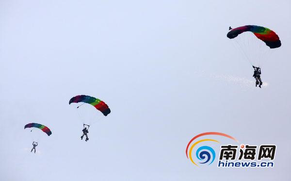 跳傘隊員在空中做表演(南海網(wǎng)記者張茂攝)