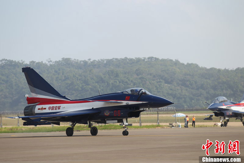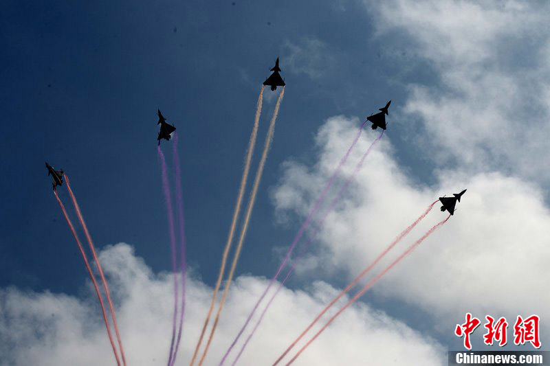 2012年11月10日,廣東省珠海市,八一飛行表演隊殲十戰機做編隊飛行練習。八一飛行表演隊將在珠海航展上做精彩編隊飛行表演。