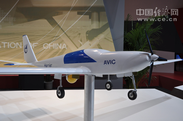中航工業(yè)比例為1:6的鷂鷹無(wú)人機模型,該機型將亮相本屆珠海航展 中國經(jīng)濟網(wǎng)記者 段丹峰 攝