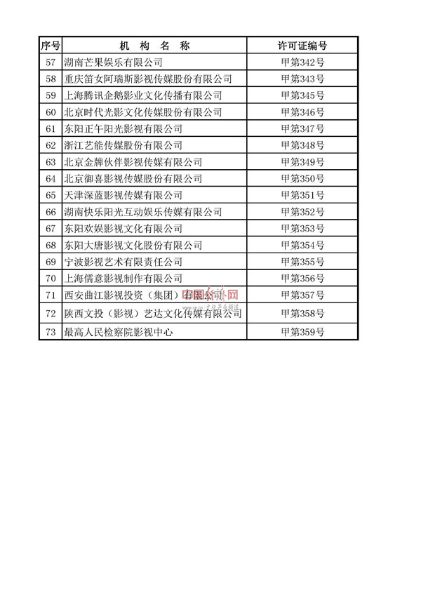 經(jīng)濟日報-中國經(jīng)濟網(wǎng)北京7月30日訊 日前,廣電總局公布2019-2021年度《電視劇制作許可證(甲種)》機構名單。中國電視劇制作中心有限公司、中國電影股份有限公司、中國國際電視總公司等73家機構入選。