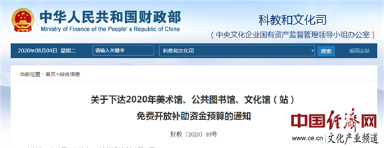 經(jīng)濟日報-中國經(jīng)濟網(wǎng)北京8月4日訊 8月4日,財政部官網(wǎng)發(fā)布了《關(guān)于下達2020年美術(shù)館、公共圖書(shū)館、文化館(站)免費開(kāi)放補助資金預算的通知》(以下簡(jiǎn)稱(chēng)“通知”),據通知附件《2020年美術(shù)館、公共圖書(shū)館、文化館(站)免費開(kāi)放補助資金預算表》顯示,2020年美術(shù)館、公共圖書(shū)館、文化館(站)免費開(kāi)放補助資金預算為2.9485億。