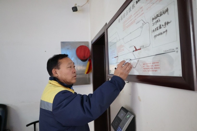 閆國會(huì )填寫(xiě)站線(xiàn)板準備接車(chē)。