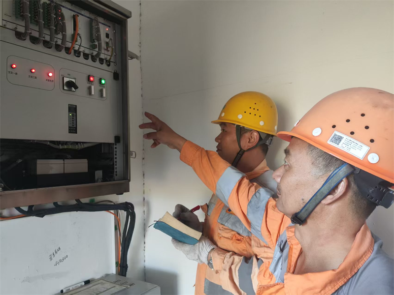 當惡劣天氣來(lái)襲,他們更是以雨為令,迅速投入到設備的冒雨巡視工作中?!爸魅?,月形山K22+779雨量達到21.4mm觸發(fā)警戒值。我們準備一下工具材料,馬上出動(dòng)巡視?!蓖宋楸悵M(mǎn)紅焦急的向車(chē)間主任周泉匯報。7月至8月期間安慶地區遭遇多輪強降雨,隊員們連續冒雨開(kāi)展雨中和雨后設備巡查?!坝晁噙M(jìn)雨靴都顧不上倒,就怕設備在惡劣天氣下出問(wèn)題?!闭f(shuō)著(zhù)太湖電力工區殷悅露出浸泡多時(shí)的雙腳,憨厚一笑:“當兵時(shí)練就那些本事,現在正好派上用途了?!痹陲L(fēng)雨中,他們憑借著(zhù)在部隊鍛煉出的堅韌意志和過(guò)硬本領(lǐng),攀爬至高處,仔細查看高坡處電桿的穩固情況以及電力線(xiàn)路的連接狀態(tài),確保每一根電桿都能在惡劣天氣下“站穩腳跟”,為鐵路供電安全提供堅實(shí)保障。