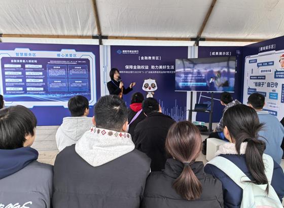 現場(chǎng),綿陽(yáng)市商業(yè)銀行金融基地志愿者立足專(zhuān)業(yè)優(yōu)勢,化身金融安全衛士,針對“代理退?!薄按砭S權”“減免債務(wù)”等不法中介亂象,通過(guò)案例剖析、情景模擬等方式開(kāi)展風(fēng)險提示,為市民群眾解答疑問(wèn)、發(fā)放宣傳手冊,宣傳存款保險、養老詐騙、非法集資等金融知識。同時(shí),構建“雙向發(fā)力”宣傳矩陣:一方面,深入解讀金融促消費政策紅利,推介該行支持小微企業(yè)融資協(xié)調工作機制和普惠小微特色金融產(chǎn)品,展示服務(wù)社會(huì )、服務(wù)發(fā)展等惠民舉措。另一方面,運用開(kāi)放日平臺打造“以案說(shuō)險”“消保微課堂”等特色節目,有效提升公眾金融素養和風(fēng)險識別能力。