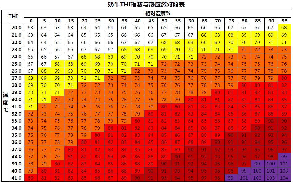 環(huán)境溫濕度指數(Temperature- humidity index, THI):是綜合考慮溫度和濕度對奶牛雙重影響的指標。當THI超過(guò)68時(shí),奶牛很大可能會(huì )出現熱應激反應。