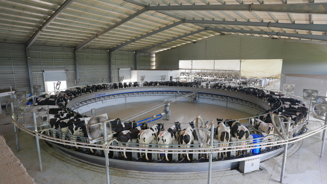 牧場(chǎng)內,高標準牛棚整齊排列,每一棟都配備先進(jìn)的智能精準飼喂TMR系統、自感應風(fēng)機、精準噴淋裝置以及全自動(dòng)恒溫飲水槽等智能設備。通過(guò)智慧牧場(chǎng)中控大廳,實(shí)現采購、飼喂、擠奶、診療、管理等全過(guò)程的實(shí)時(shí)監控,每一頭奶牛的健康狀況與生產(chǎn)性能都被精準掌握,確保每一滴牛奶都源自健康的奶牛。