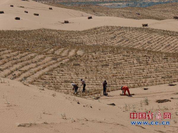 中衛騰格里沙漠腹地治沙現場(chǎng) 中國經(jīng)濟網(wǎng)記者裴小閣/攝