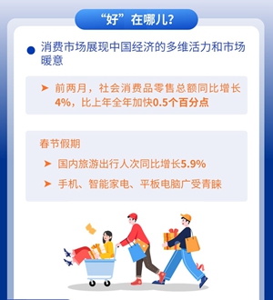近日,今年前兩月經(jīng)濟數據發(fā)布,國家統計局新聞發(fā)言人概括為“發(fā)展態(tài)勢向新向好”。這意味著(zhù)什么?