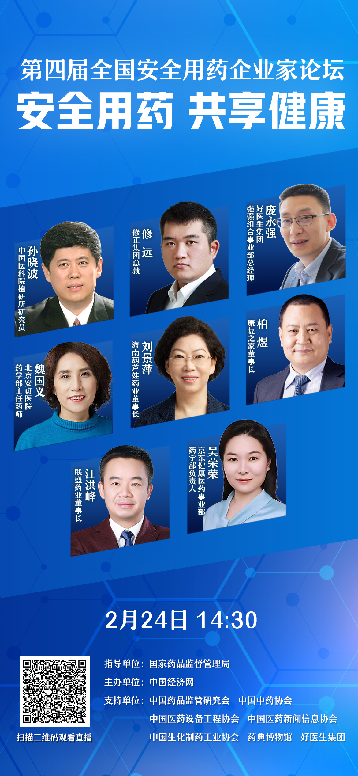 中國經(jīng)濟網(wǎng)2月23日訊(記者 郭文培)由國家藥品監督管理局指導,中國經(jīng)濟網(wǎng)主辦的“第四屆全國安全用藥企業(yè)家論壇”將于2月24日在北京召開(kāi)。此次論壇是“全國安全用藥月”系列活動(dòng)的組成部分,論壇主題為“安全用藥共享健康”。