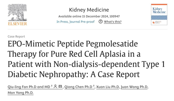 近日,美國腎臟基金會(huì )(NKF)官方期刊《腎臟醫學(xué)》(Kidney Medicine)發(fā)表了由上海交通大學(xué)醫學(xué)院附屬第一人民醫院腎內科范秋靈教授主導研究的一篇有關(guān)促紅細胞生成素(EPO)模擬肽——培莫沙肽(商品名:圣羅萊)的病例報告。該報告首次顯示了培莫沙肽能夠有效治療EPO誘導的純紅細胞再生障礙性貧血(PRCA)患者,且安全性良好,為這種罕見(jiàn)但嚴重的并發(fā)癥提供了一種頗具前景的創(chuàng )新解決方案。