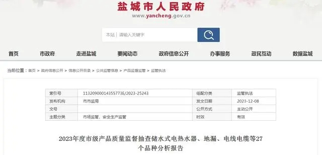 2023年度鹽城市市場(chǎng)監督管理局委托南京市產(chǎn)品質(zhì)量監督檢驗院(南京市質(zhì)量發(fā)展與先進(jìn)技術(shù)應用研究院)組織實(shí)施家用燃氣具產(chǎn)品市級監督抽查。本次抽查計劃10批次,抽到10批次,經(jīng)檢驗合格10批次。