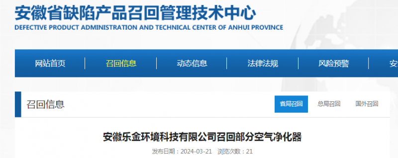 2024-03-22 09:34 來(lái)源:安徽省缺陷產(chǎn)品召回管理技術(shù)中心網(wǎng)站