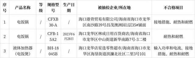2023年8月-2023年9月,??谑惺袌?chǎng)監督管理局委托華測檢測認證集團股份有限公司對全市流通領(lǐng)域(線(xiàn)上)的電飯煲產(chǎn)品進(jìn)行了市級監督抽查。本次共抽查3批次產(chǎn)品,3批次產(chǎn)品不合格,合格率為0%。