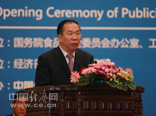 中共中央對外宣傳辦公室、國務(wù)院新聞辦公室副主任王國慶在第三屆中國食品安全論壇上致辭 王維亮攝