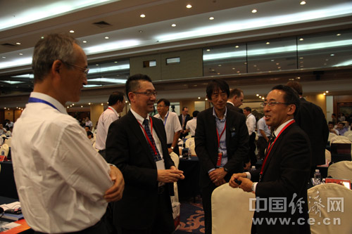 由中國道路交通安全協(xié)會(huì )、中國汽車(chē)技術(shù)研究中心和中國經(jīng)濟網(wǎng)共同主辦的“2013中國道路交通安全論壇”于8月29日在北京首都大酒店舉行。圖為日產(chǎn)汽車(chē)株式會(huì )社企劃·先行技術(shù)開(kāi)發(fā)本部部長(cháng)高橋信彥(右)與參會(huì )嘉賓進(jìn)行交流。中國經(jīng)濟網(wǎng) 裴小閣 攝影