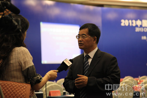 由中國道路交通安全協(xié)會(huì )、中國汽車(chē)技術(shù)研究中心和中國經(jīng)濟網(wǎng)共同主辦的“2013中國道路交通安全論壇”于8月29日在北京首都大酒店舉行。圖為清華大學(xué)交通研究所所長(cháng)陸化普接受央視記者采訪(fǎng)。中國經(jīng)濟網(wǎng) 裴小閣 攝影