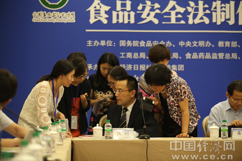 2013年全國食品安全宣傳周啟動(dòng)儀式暨第五屆中國食品安全論壇6月17日在北京舉辦,今年主題為“社會(huì )共治 同心攜手維護食品安全”。圖為北京大學(xué)法學(xué)院副院長(cháng)沈巋接受采訪(fǎng)。中國經(jīng)濟網(wǎng) 王耀峰/攝