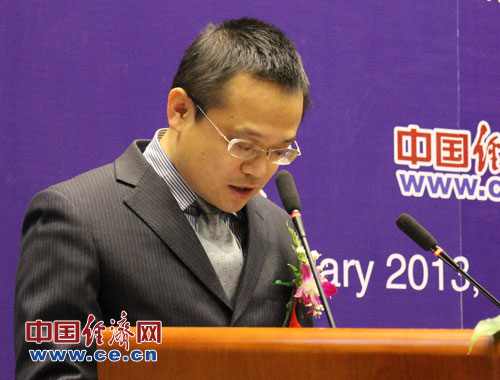 中國科學(xué)院預測科學(xué)研究中心1月26日(周五)在北京中科院數學(xué)與系統科學(xué)研究院舉辦“2013年中國經(jīng)濟預測發(fā)布與研討會(huì )”。圖為科學(xué)出版社經(jīng)濟管理出版分社社長(cháng)陳亮致辭。中國經(jīng)濟網(wǎng)楊瀟/攝影