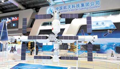 載人航天工程二期和三期任務(wù)。展廳中,最引人注目的莫過(guò)于天宮一號目標飛行器1:1的模型及未來(lái)空間站模型。它們向觀(guān)眾形象地描摹了我國載人航天工程二期和三期的圖景。